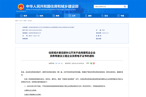 Notice from the Office of the Ministry of Housing and Urban-Rural Development on the Activation of Electronic Certificates for Construction Industry Enterprises' Qualifications and Other Construction Engineering Enterprise Qualifications
