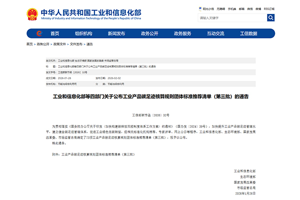 Notice of the Ministry of Industry and Information Technology and Other Four Departments on Publishing the Recommended List of Group Standards for Carbon Footprint Accounting Rules for Industrial Products (The Third Batch)