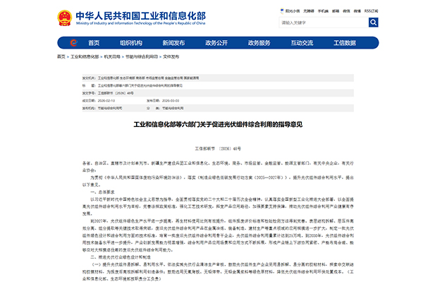 Guidelines of the Ministry of Industry and Information Technology and Other Six Departments on Promoting the Comprehensive Utilization of Photovoltaic Modules