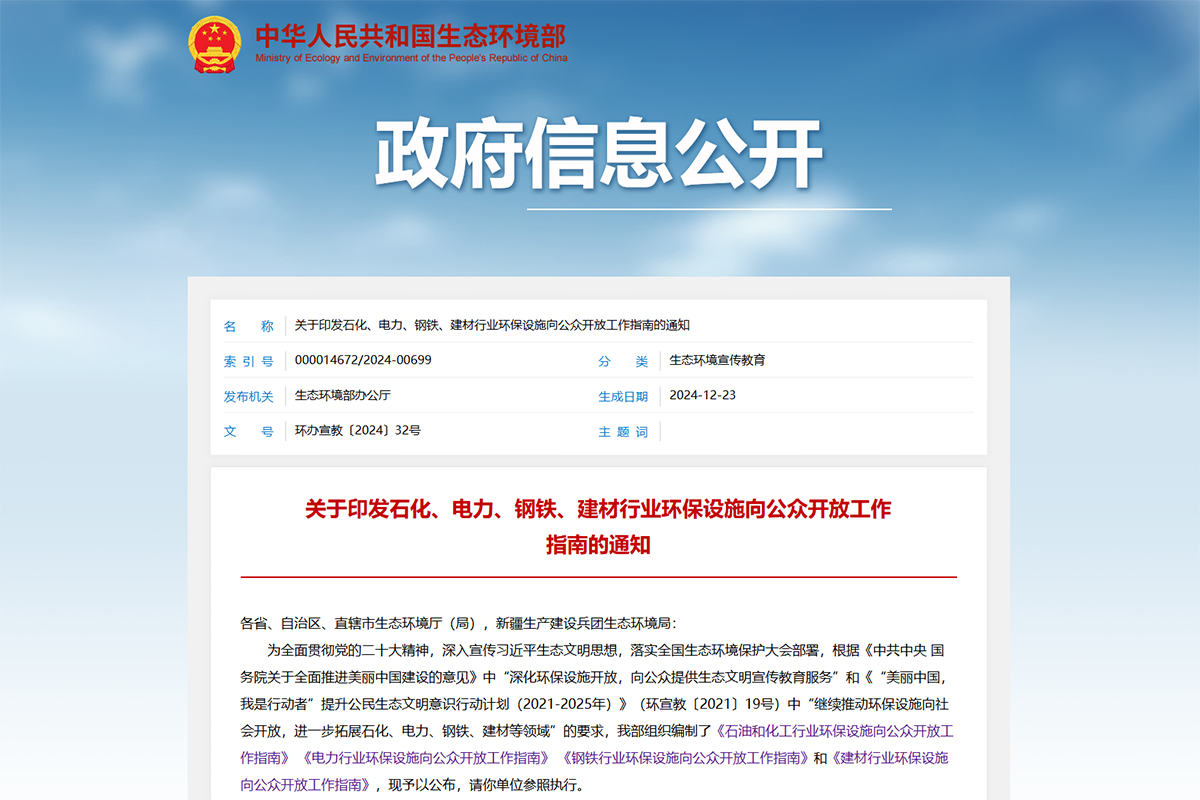 Notice on Issuing the Work Guidelines for Opening Environmental Protection Facilities in the Petrochemical, Power, Steel, and Building Materials Industries to the Public